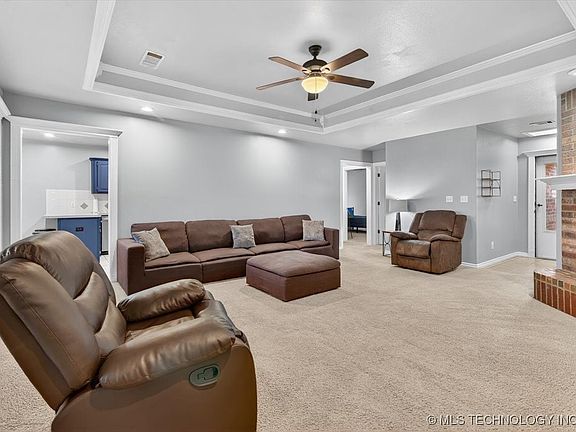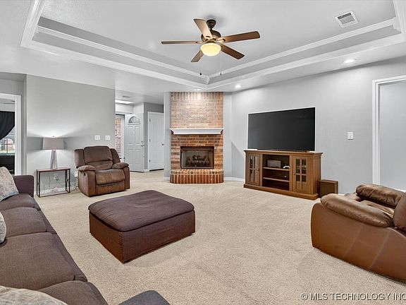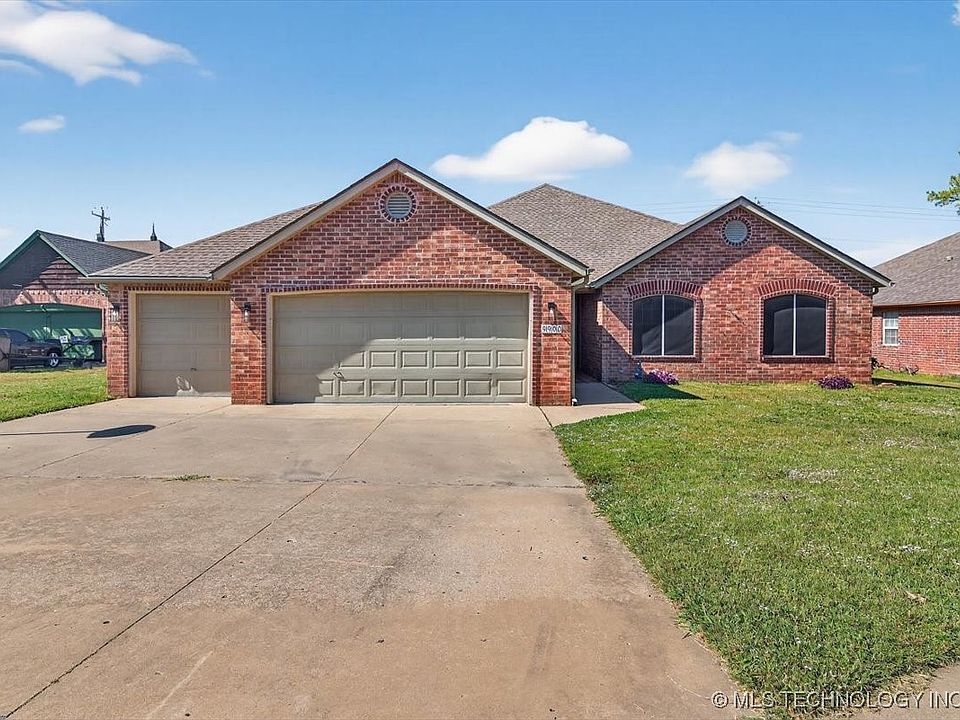 BEAUTIFUL TRUE 4-BEDROOM, 3-CAR GARAGE HOME in Bailey Ranch Estates. Single story, very functional and unique split floorplan. 2 bedrooms and hall bath on one side with primary bedroom suite and 4th bedroom on the other. Very spacious living room with angled fireplace, functional wall space for large screen TV, and a wall of windows looking out over back covered patio and extended deck. U-shaped kitchen with lots of counter space and cabinet storage which connects with the large dining area. From dining, door opens to roomy covered patio and deck that allows for year-round extended outdoor living space. This beautiful low maintenance full brick home is located in an ESTABLISHED NEIGHBORHOOD THAT INCLUDES LOTS OF AMMENITIES: sidewalks throughout, 2 parks, community pool, clubhouse available for nominal rent, 3 ponds with walking trails and stocked for fishing. You're just minutes from major shopping, dining, and highway access. THIS HOUSE IS TRULY WHAT YOU CALL A HOME IN AN OUTSTANDING NEIGHBORHOOD!!