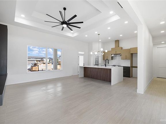 Just completed Brand-new construction home in the desirable Falcon’s Cove subdivision in North McAllen. This 2,137 Sqft house offers comfort, style, and convenience. Featuring 4 bedrooms, 2 bathrooms,This home is designed for today’s lifestyle. The open-concept living, dining, and kitchen areas are filled with natural light and include a modern built-in TV wall with floating console. The kitchen boasts double-tone solid wood cabinets, quartz countertops, and included appliances (stove, microwave, range hood, dishwasher) making it nearly move-in ready. Enjoy all-porcelain tile flooring, ample closets, mud room, laundry room, and elegant light fixtures. The covered patio with bath, professional landscaping, and sprinkler system make outdoor gatherings easy. Additional highlights include a 2-car garage and excellent subdivision access with two entrances. Located near restaurants, schools, parks, and shops—this home blends style, function, and location! Book your personal showing today!