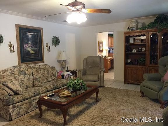 Big home with lots of space on over 4 acres. 3 bedrooms, 3 full baths, large Florida room, open kitchen with breakfast bar, lots of cabinets and counter space, gorgeous wood burning stove with a heat-a-later insert. The large 25x12.5 bedroom is being used as a formal dining room (has a large closet) but can be switched back to a bedroom by switching the chandelier out for a ceiling fan. Guest bathroom off of the kitchen with access from the carport. New AC unit in July 2015. Single car attached garage and a 2 car detached garage, paved driveway with more paved parking. Citrus trees, beautiful oaks, back patio and lots more. A pretty property in a convenient location!