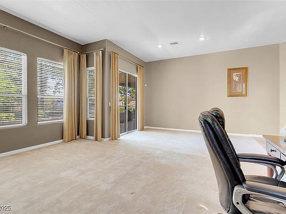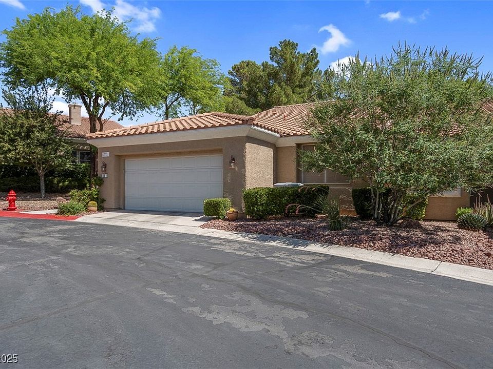 Spacious 2 bedroom. Both bedrooms have walkin closets and private bathroom. Gorgeous large covered patio off the Living room and primary bedrooms with elevated view of lush landscaping and pool. Easy access to Summerlin Parkway and the 215. Great shopping restaurants and hospitals. Lots of customized upgrades. Exquisite window coverings and cabinetry in the bathrooms with travertine and slate flooring. Storage cabinets and shelves in the spacious garage. Incredibly comfortable home with High ceilings, classy upgrades in a desired community,
