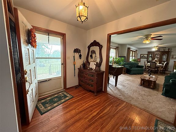 Beautiful views from an Oklahoma hillside, this brick ranch home setting on 40 acres has a lot to offer. The home has large rooms and lots of storage. There is lots of room for entertaining with a formal living and dining and the den having the wood fireplace gives you that cozy homey feeling. The land has a large barn and 2 ponds. The home is maintained but dated, come take a look.