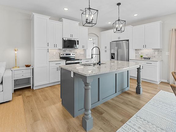 Stacked-stone electric fireplacePrivate primary suiteCustom detailsGranite countertopsCovered patioWelcoming front porchDouble vanities