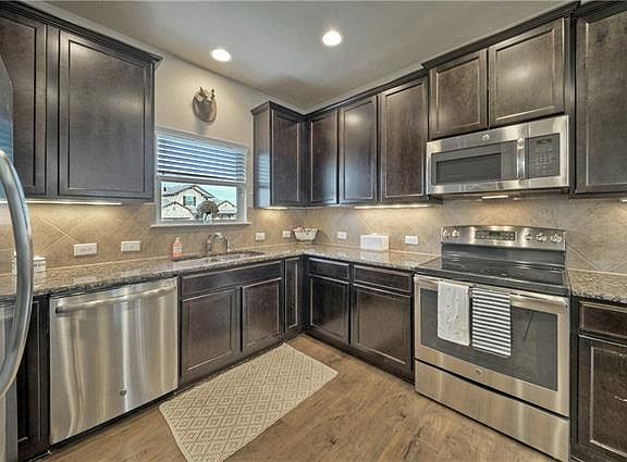 One hour notice please...Picture perfect 3BR/2.5BA in Montebella (past Vistancia)~Natural light in an open great-room space~Granite counters + stainless appliances, bfast bar, laminate floors throughout 1st floor~side entry garage~Corner lot w/panoramic hill country views~Peaceful Texas 2-story, friendly neighbors, front and back covered porch, extended deck, close to boutiques, wineries, HEB & Belterra Village for movies & entertainment..Walk to playground/park/creek..HURRY!~Exemplary Lake Travis ISD