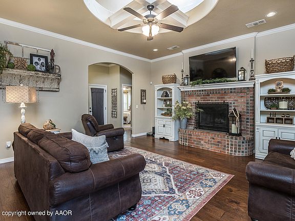 Incredible detail in this Hillside Terrace beauty! Open floor plan with kitchen looking onto den with gorgeous fireplace and incredible skylight with wood detail that is art! Spacious kitchen with island, granite countertops, stainless appliances and large breakfast area. Master suite has large walk in closet and inviting bath with jetted tub and walk in shower. Built in desk/office. Den looks out onto outdoor living. Beautiful landscaping.