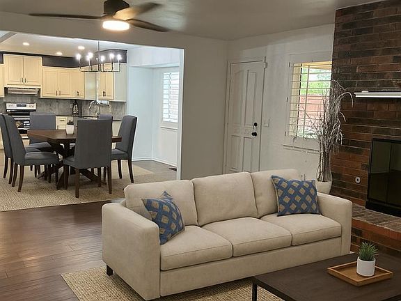 Welcome to your dream home in Northwest Oklahoma City! This charming 3-bedroom, 2-bath residence has been remodeled with roof replaced in 2023 and hot water heater 2025. Home has 2 living areas, formal dining plus eating area which is an open concept from kitchen into eating area, formal dining & living room. Enjoy cozy evenings with the living area's wood-burning fireplace with large hearth and newly painted bookshelf. Beautiful kitchen with new marble backsplash, cabinet knobs and new stainless dishwasher/stove and existing fridge stays. Granite counters in kitchen and bathrooms. Modern touches throughout including new light fixtures/fans, painted wall/ceilings and bathroom and hall cabinets. New porcelain tiles in entry, shower and tub (also glass tiles) and bathroom flooring. New carpet, bathroom hardware, doorknobs, front door, New barn door in master bathroom. New tongue/groove paneling on back patio and front of home.