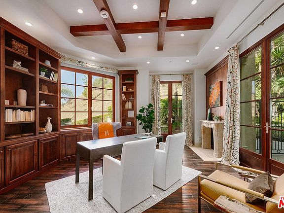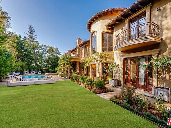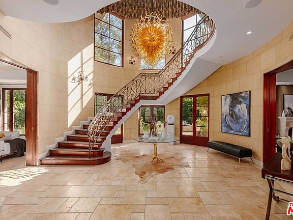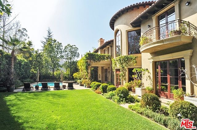 Tucked away at the end of a cul-de-sac, this private Mediterranean villa just minutes from Rodeo Drive stretches across expansive lush grounds & emanates classical style w/contemporary flair. Enter a stunning 2-story formal entry w/grand sweeping staircase & timeless Chihuly blown glass chandelier hanging gracefully above. Features 5 bed, 7 bath, office, media room, 2 bars & entertainment loft. Exquisite details including tumbled walnut hardwood floors throughout, vaulted ceilings, exposed beams, imported French doors & windows. Formal living and dining rooms merge seamlessly into the massive gourmet kitchen w/Viking appliances, large island, & walk-in pantry. Surrounded by mature trees & hills, every room offers astounding views overlooking lush gardens. Ideal for outdoor entertaining w/private terrace, heated pool, BBQ, fire pit, dining area and endless garden views. Master suite includes his/her bath, spacious closets, fireplace, private terrace and charming sitting room.