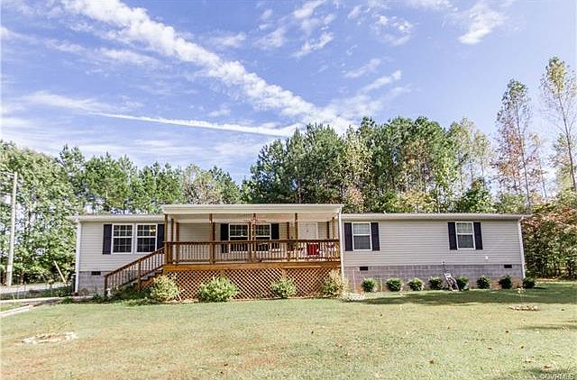 On 20.59 of picturesque acres! A well-maintained 4 bed/2 full bath, manufactured home nestled in Dinwiddie County ,surrounded by flower gardens and trees. One-level living with split floor plan,featuring master bedroom & master suite bath garden tub, shower and double vanities located at one end of the home; additional bedrooms/bathroom located on the other end.Eat-in kitchen with ample cabinet space.Large living room for relaxing with family. Family room/den area for reading or just enjoy a peaceful night in the country. Sizable deck area for your outdoor enjoyment,with views of the spacious, backyard. Room to relax/entertain; yet,estate offers potential to expand.In addition, this property has 2 outbuildings .Admire the refined cleared acres,along the long gravel drive,while taking in the sights/tranquil sounds of the surrounding nature.Very secluded. Back on market due to no fault of the seller.
