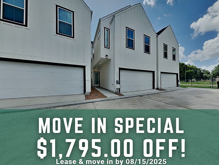 LEASE & MOVE IN BY 08/15/25 & RECEIVE $1,795.00 OFF!! Base rent $1795.00 plus $29.00RBP, Total of $1824.00 3bd and 2.5 bath Townhomes located near the Heights. Enter your new home through this modern glass front door that leads into your open concept living room that has high ceilings, can lighting, lvp flooring and plenty of natural light. Kitchen is open with a spacious island and matching countertops, subway style back splash., white cabinets, matching stainless steel appliances, garden sink and kitchen pantry with double doors. All bedrooms are spacious and come with carpet, can lighting and high ceilings. Primary bath is designed with beautiful modern upgrades and Spa style soaking tub and dual vanity. 2-Car garage *Property is Virtually Staged-No furnishing included. All Bridge Homes residents are automatically enrolled in our Resident Benefits Package (RBP), to ensure the best leasing experience. At Bridge Homes, our advertised rental rate includes all mandatory recurring fees to ensure full transparency and a seamless leasing experience. This means no surprisesjust top-tier service for our residents. One included benefit is our Resident Benefits Package (RBP), which provides valuable services like utility concierge, air filter delivery, credit building, and resident rewards. Additional details are available upon request. This property allows self guided viewing without an appointment. Contact for details.