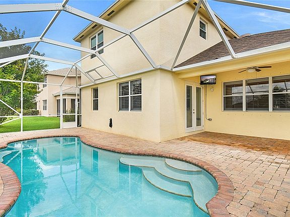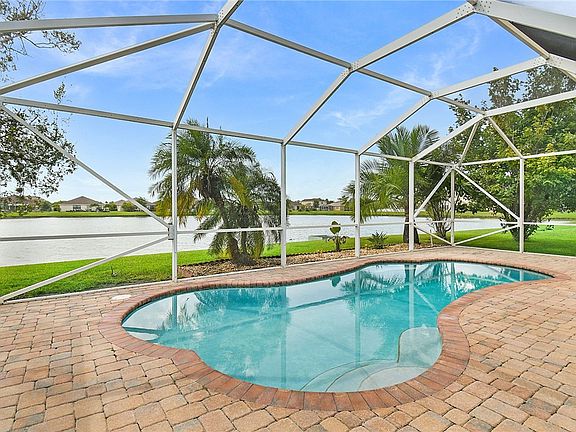 3 Bedroom, 3 bath, 2 story pool home in Verona Trace. Come and enjoy the sunsets from your screen enclosed pool/patio area. This lakefront pool home includes a newer roof and appliances. Laminate and tile floors throughout. 1 Bed/bath down and 2 upstairs. Community Clubhouse and pool with amenities. Impact windows upstairs and impact entry and French doors downstairs. Salt chlorinating system and pool heat pump. Don't miss this opportunity to own a move-in ready lakefront pool home in a prime location!