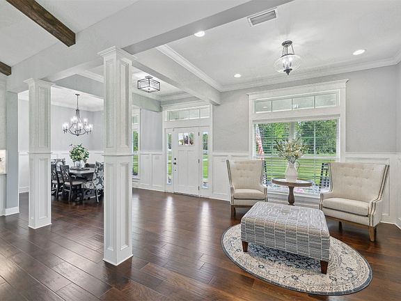 Custom-Built Elegance- Welcome to 9902 Kings Crossing Drive, a beautifully custom-built and custom-designed residence offering 3 bedrooms, 3.5 baths, on 2.9 acres of privacy in the gated Jacksonville Ranch Club. Built in 2019 and meticulously maintained, this home blends timeless elegance with modern comfort.