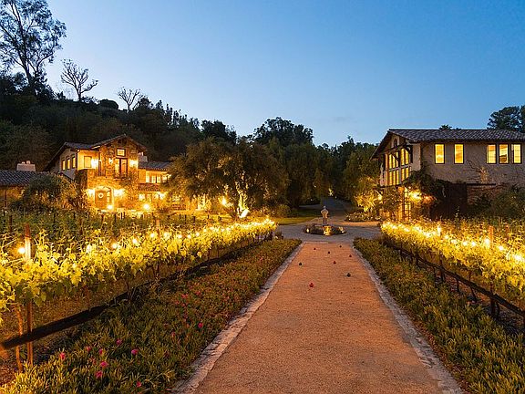 An exceptional one of a kind property on 3.89 acres in Cowan Heights. From the private gated entrance and winding drive one is drawn to the seclusion and beauty of nature. Within this picturesque setting is a Tuscan inspired home with a separate guesthouse and a bonded winery that produces award winning vintages from grapes grown onsite. The sprawling grounds offer lavish appointments, including a Tuscan-style courtyard, covered loggias, hilltop gazebos, fire pits, spacious open seating areas and peaceful walkways that meander through the woods, olive grove and vineyards.