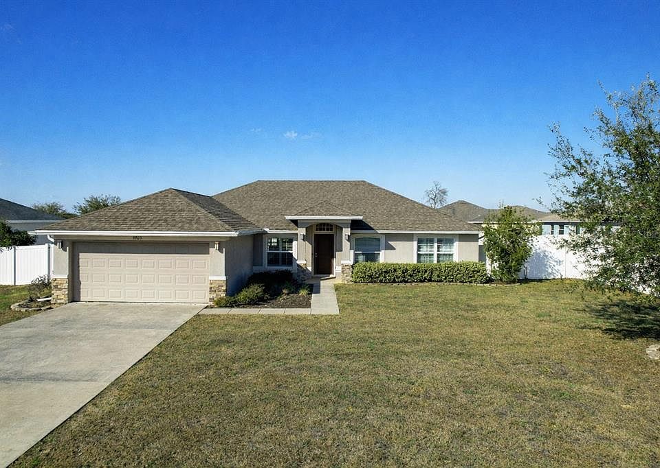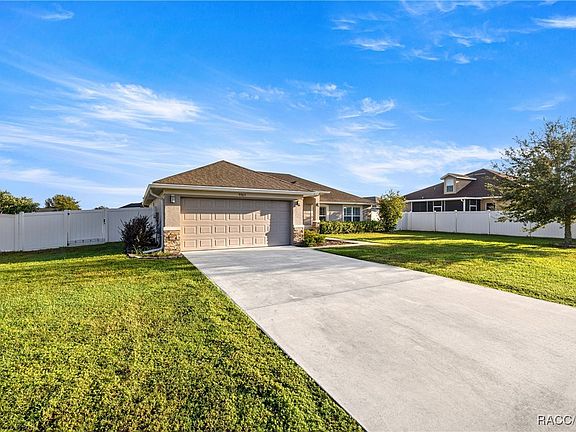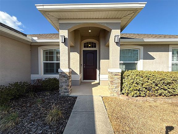 Step into refined living in this stunning 2018-built residence featuring a dedicated office/den and an exceptionally low $46/month HOA, located in the gated community of Meadow Glenn in SW Ocala. This home offers 1,858 square feet of beautifully designed living space and delivers the perfect balance of sophistication, comfort, and modern convenience. Striking curb appeal with decorative stone accents sets the tone from the moment you arrive. Stepping through the covered foyer entry, the inside of the home offers an open and airy layout with an oversized living room and elegant formal dining area, designed to support today’s flexible lifestyle. Plantation shutters can be found throughout the home. The chef-inspired kitchen anchors the home with generous counter space, a breakfast bar, and a sun-filled breakfast nook creating an inviting space for both entertaining and everyday living. The primary suite is a true retreat, showcasing a tray ceiling, dual walk-in closets, and a spa-like bath designed for relaxation. Step outside to the screened lanai and enjoy a fully vinyl privacy-fenced backyard—perfect for quiet mornings or evening gatherings. Centrally located near the local neighborhood schools and perfectly positioned just minutes from the Hwy 200 corridor, the vibrant lifestyle of Downtown Ocala, I-75, the famous World Equestrian Center, and the newly built Publix, this home offers luxury, lifestyle, and location in one exceptional package. A rare opportunity to enjoy Florida living at its finest.