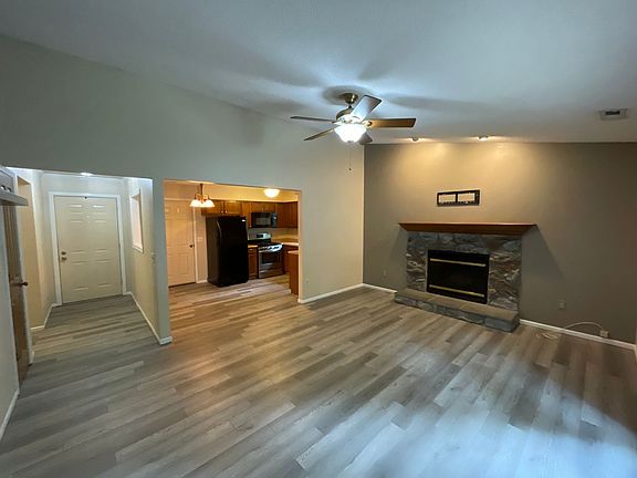 Here we have a lovely 3 bed 2 bath ranch home in Cottonwood Lakes. This home has recently been updated with luxury vinyl plank throughout. The eat-in kitchen features black and stainless appliances. The great room boasts vaulted ceilings, wood burning fireplace and direct access to the back yard. The large master suite is accompanied by a spacious walk in closet and full bath. The remaining two bedrooms offer ample storage with easy access to the second full bath. The wooded backyard offers some privacy and includes a wood deck and shed for storage. Listed price contingent upon 2 year lease. 1 year lease subject to price change.