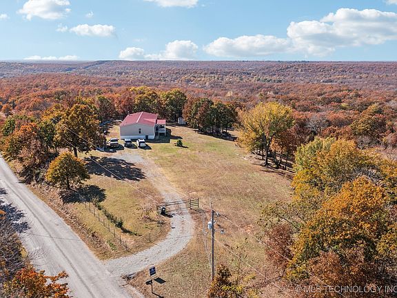 Escape to the peace and beauty of country living in this stunning home surrounded by rolling hills, mature trees & open skies. Perfectly set on 10 Acres. This property offers the best of both worlds-serene privacy & easy access to turnpike gate. 3 bedroom, 2 bath, 2 living areas, open floor plan, large kitchen with center island, storm cellar & 2 storage buildings.