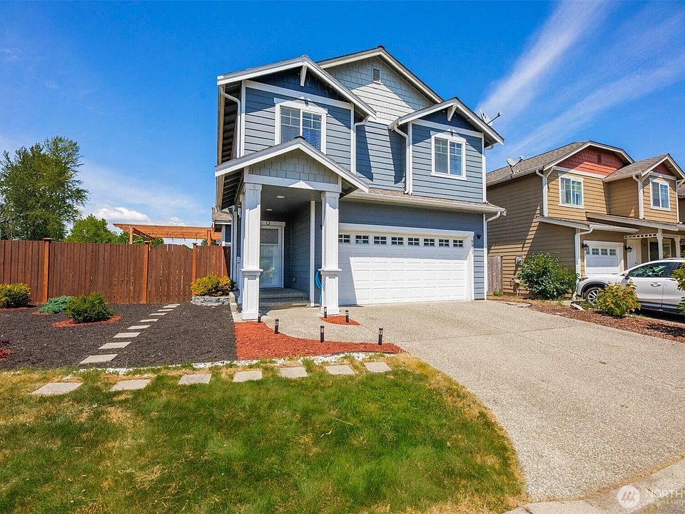 Move-in ready and like new, this beautiful 4-bedroom, 2.5-bath home sits on a spacious corner lot in the heart of Lake Stevens. The open-concept main floor is filled with natural light and features a stylish kitchen with quartz countertops, stainless steel appliances, and a large island perfect for entertaining. Upstairs offers a luxurious primary suite, generous bedrooms, and a versatile loft space ideal for a home office or playroom. Enjoy the fully fenced yard with a charming pergola, perfect for relaxing or hosting gatherings. An EV charger is also included. Conveniently located near top-rated schools, parks, shopping, and major highways.