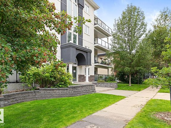 Welcome to Strathcona Haven a quiet building, where you’ll find this gorgeous, air-conditioned condo featuring, 1 bedroom, den and 2 baths. Located just steps from Whyte Ave with easy access to the University of Alberta. This bright and inviting corner unit, has no neighbours on either side. Original owner & pet free this unit shows pride of ownership with functional layout. The kitchen offers ample cabinetry, brand new stainless steel appliances, a corner pantry, and opens to the spacious dining area. The cozy living room features a corner fireplace and access to a private patio. The king-sized primary suite includes dual closets and a 3pc ensuite. French doors open to the den with a closet, perfect for a home office or guest space. A 4pc bath, in-suite laundry plus storage complete the unit. You'll also enjoy heated underground parking and secured storage unit, in this pet-friendly building, complete with soundproofing. Close to transportation, boutique shopping, festivals, and the Farmers Market.