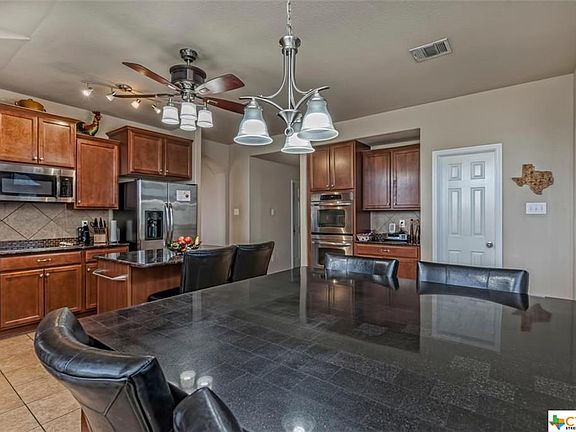 Updated home in Belton Schools with community pool. Kitchen features breakfast area, granite countertops, custom cabinets, large kitchen island, double oven with extra countertop space and walk in pantry. Kitchen opens to family room. Home offers 2 living areas and 2 dining areas. Home has office with extra large hallway in home that could be used as 2nd office space or flex space. Master suite features large walk in closet, separate garden tub and shower with separate double vanity sinks. Exterior features extra large lot, sprinkler system, custom landscaping, solar screens, covered patio that has been extended and storage building.