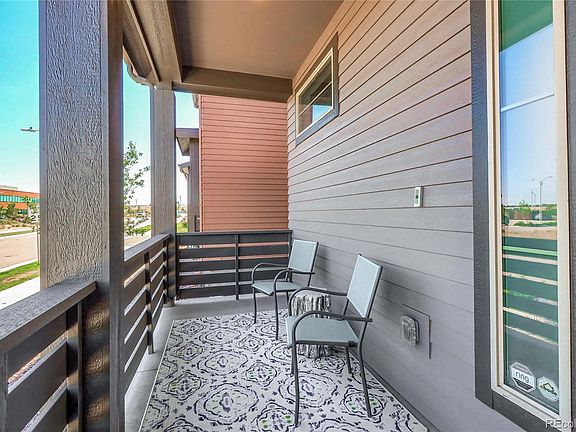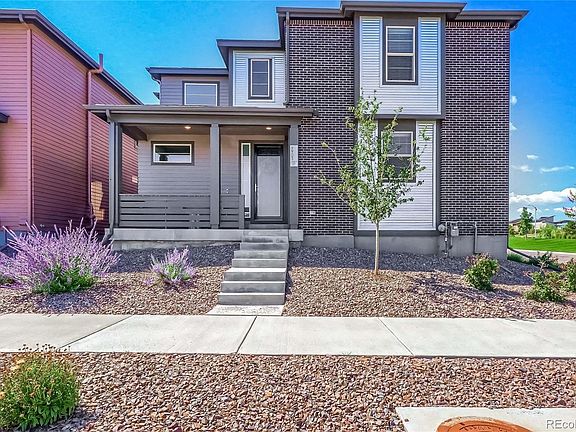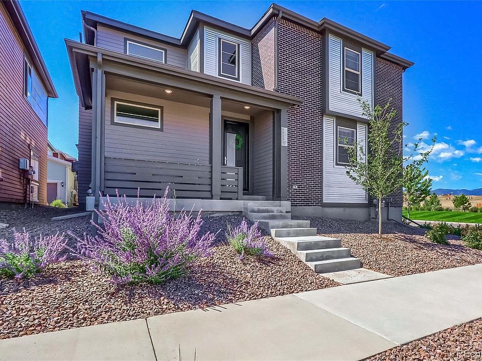 Immaculate, corner unit with majestic mountain views. Colorado contemporary design with steel & brick exterior, security screen doors, private front/rear covered patios. Kichler Custom lighting & fans in every bedroom. Lennar Element's "Ash Model" provides single family living with zero yard maintenance and plowing included. Tech includes Ring doorbell, Rachio Sprinkler System, MyQ garage opener, Steward Smart Home Integration, 1 gig fiber Century Link internet, Nest & Monitored Ebode Security System. 8' doors throughout main level. Large open floorplan with white cabinets, custom handles, granite and stainless steel appliances. Acacia laminate floors and bold, beautiful paint palate throughout. Insulated, painted 2 car garage and paver driveway. Large guest bedrooms & upstairs laundry room. Solar and Radon system installed. Central, walkable part of Sterling Ranch. Gym and clubhouse opening very soon and pool coming next summer. Don't forget your Free State Parks Pass and enjoy living minutes away from Roxborough, Deer Creek, Waterton Canyon and Chatfield State Parks. Washer & Dryer included!