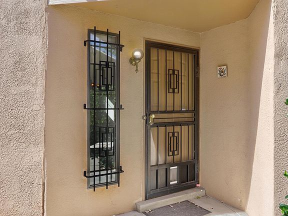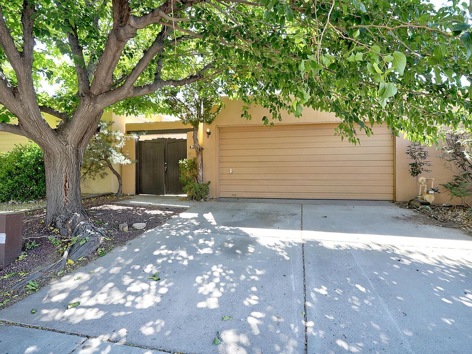 Welcome to this NE Heights single level charming patio home. Once you enter the private courtyard, you are secluded from the neighbors. The living, dining, and kitchens have brick floors with raised ceilings and clear story windows. Kitchen has ample counter and cabinet space. Primary suite has an alcove that would make a perfect office or sitting area with a private enclosed patio. Large walk in closet and double sink vanity. Back yard has a covered patio. Furnace, air conditioner and garage door remote were replaced in summer of 2021. Located on a cul-de-sac street for peace & quiet, and has easy access to shopping, restaurants and Oso Grande Park; best of both worlds.