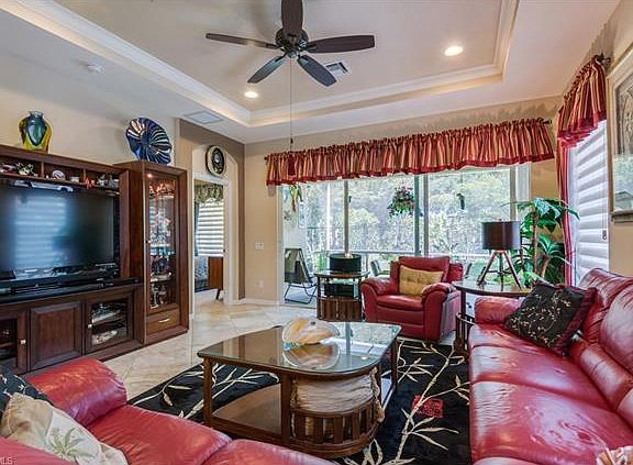 Tortuga Time!!! Living is easy in this spectacular end unit villa property with it's generous split floor plan and many custom upgrades. This two bedroom, two full bathroom, plus den residence will have you at hello. Beautiful diagonally laid porcelain floor tiles compliment the custom exotic granite used throughout the home. Details like high volume ceilings, along with wide crown molding in the deep tray ceilings in the living room, dining room and master bedroom showcase this property's casual elegance. The master bathroom's luxurious spa style walk-in shower with built in bench and separate water closet is a must-see! A gorgeous chef's kitchen with solid wood 46" tall cabinets and ambient under mounted lighting is where all your friends will want to gather. An extended lanai, custom curtains and blinds along with storage, storage, storage! Close to Sanibel, shopping, restaurants and beautiful white sand beaches!