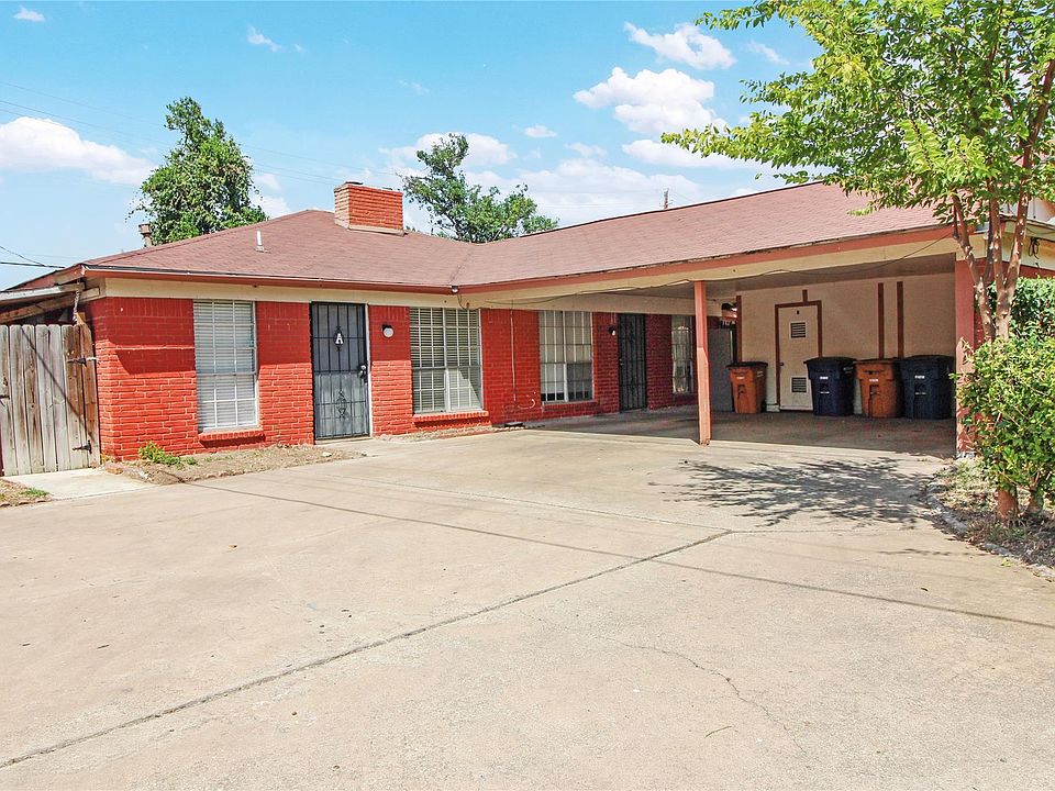 Renovated 3-bedroom, 1-bath duplex in North Austin with convenient access to I-35. Features include one covered parking space with an attached utility room, refrigerator, and washer/dryer connections. Enjoy a large backyard with a covered patio, pet-friendly ceramic tile flooring throughout, and a comfortable, updated interior. **Interior photos are from Side A, the mirror unit with similar finishes and updates.