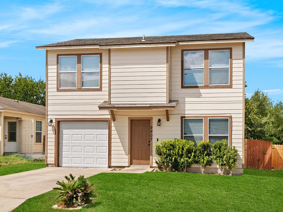 Updated home with new vinyl flooring, carpets and paint. This 3 bedroom 2-1/2 bath home is perfect for family living with a game room upstairs that can also double as a home office or media room. Primary bedroom has a spacious closet and lots of counter space in the primary bathroom. Roomy secondary bedrooms. Large walk-in pantry off of kitchen leading to a one-car garage. Privacy-fenced backyard with covered patio and outdoor kitchen. Quiet community located near Hwy. 90 and Loop 1604 W. Convenient to Lackland AFB, Sea World, shopping and restaurants.