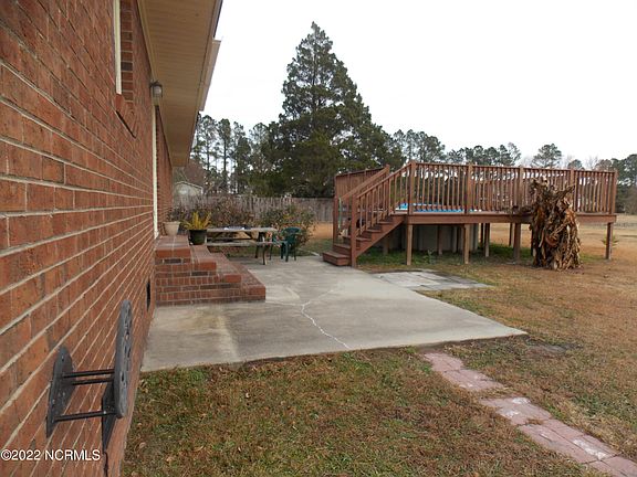 Country Living! Nice three bedroom, two full bath Brick home with approximately +/- 10 Acers. Conveniently located between Camp LeJeune and Cherry Point Air Station. Large two car detached garage, small shed that was used as a office, large carport for RV's, boats or whatever your hobby's are. Rear patio leads to a above ground pool. Interior of home has just been painted, move in ready.