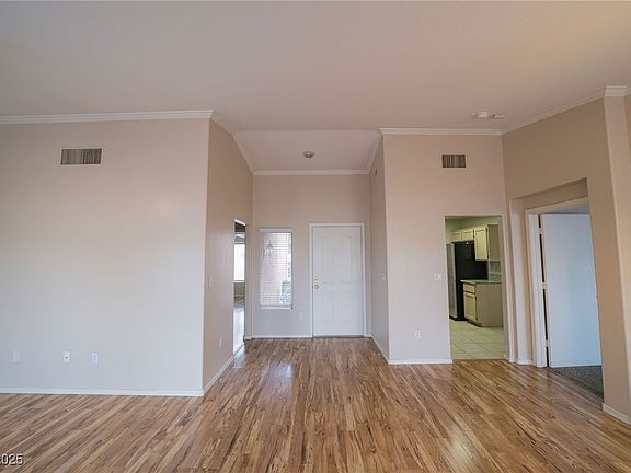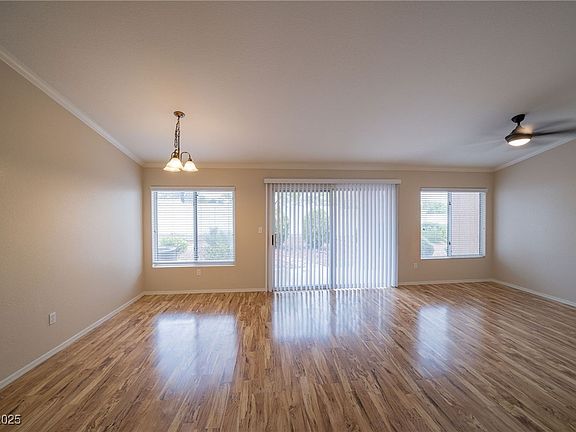 Welcome to this inviting 2-bedroom, 2-bathroom single-story home located in the highly desirable 55+ community of Sun City Summerlin. Featuring an open floor plan with vaulted ceilings and laminate flooring throughout. Primary bedroom provides carpet, a walk-in closet, and an en-suite bath with stone countertops, tile flooring, and a full-size walk-in shower. Secondary bathroom includes stone counters, tile flooring, and a bath/shower combo. Kitchen is spacious with storage and Formica countertops, a microwave, refrigerator, stove, and dishwasher. Enjoy low-maintenance desert landscaping in the front and backyard, along with a covered patio. This home has an attached 2-car garage with dedicated laundry space. Sun City Summerlin residents enjoy amenities including 4 community centers, 3 golf courses, multiple pools, fitness facilities, tennis, pickleball, and more. Conveniently located near Downtown Summerlin for shopping, dining, & entertainment, with easy access to the 215 freeway.