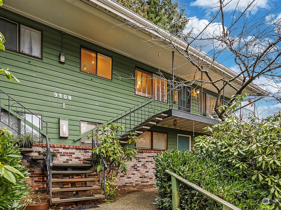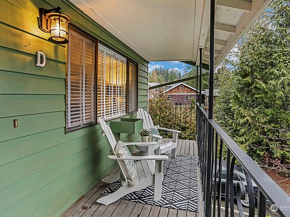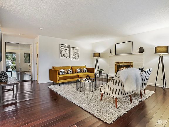Bothell beauty has a fresh and modern look for 2023! Enjoy open concept living with your well-designed kitchen, light fixtures, new stainless-steel appliances & dedicated dining area makes entertaining a breeze. Oversized living room with cozy wood burning fireplace is a sought-after feature. Large main bedroom has 2 closets with new ensuite 1/2 bath & private patio. Spacious guest bedroom or office is well appointed with ample closet space. Dedicated laundry room with new washer & dryer has an abundance of storage. New full bathroom with modern and updated design is not to be missed. Shared ground level patio space in addition to your large private deck. 2 dedicated parking spots, extra storage area, below rental cap! Welcome Home!