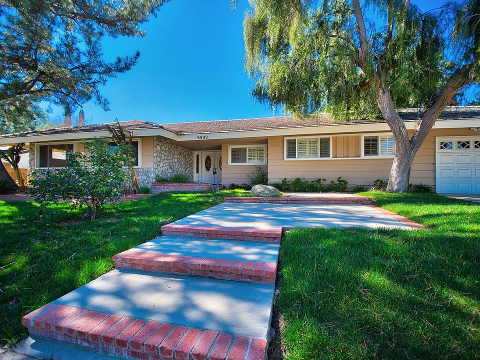 Excellent opportunity to own a pool home on a large 11,007 square foot lot in Chatsworth! 9909 Farralone Avenue features 3 bedrooms, 2.5 bathrooms, and 1,932 square feet of living space. The home has an updated kitchen with stainless steel appliances, vaulted ceilings and two fireplaces in the main living areas. Hardwood and tile floors are prevalent throughout this home and the updated bathrooms add a touch of elegance. The large backyard with pool, pizza open, and Santa Maria style grill is the ideal location to entertain family and friends. French doors in the Master bedroom provide direct access to the backyard; open all the doors in the dining room to enjoy Southern California's indoor/outdoor living opportunities. Chatsworth is calling - make it home, today!