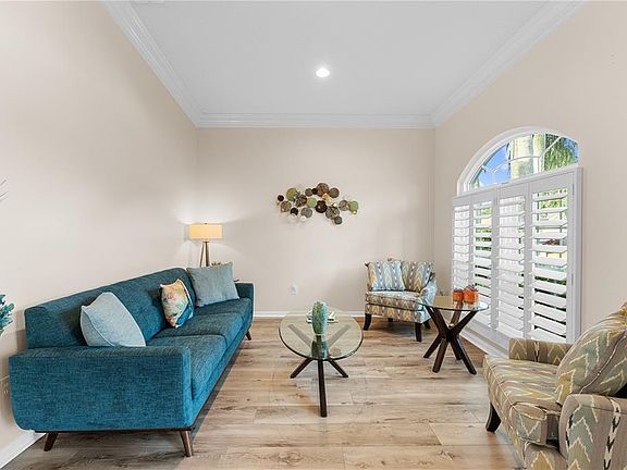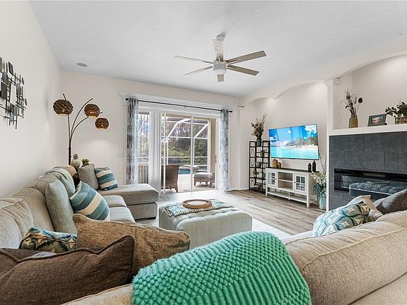 Screened pool and spaGas fireplaceCovered lanaiRenovated kitchenConsistent modern finishesMultiple prep zonesVaulted ceilings