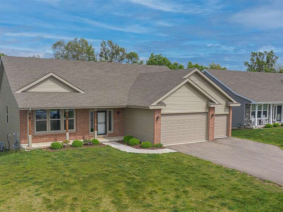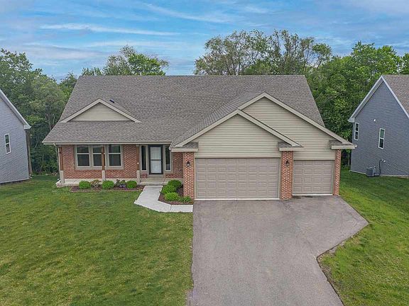 Beautiful open concept 2340 SF ranch. Like new! 4 bedrooms, 2.5 baths, 3 car garage. Solid wood doors and trim. Granite countertops in kitchen and bathrooms! Kitchen complete with island, walk in pantry and 42" furniture grade, dovetail joinery, soft-closet cabinets. Stainless steel appliances. Handscraped bamboo flooring. Upgraded carpet. Master suite with private bath, dual vanity sink and walk-in closet. Energy efficient 2x6 exterior construction, transoms over interior doors. Full basement with walk out. Basement is pre-plumbed for a bath. First floor laundry.