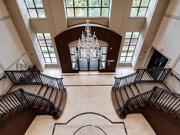 Low Rise Luxury Building; Stunning 1674 Sq. Ft. With Luxurious Finishes, 9'8" Ceiling Height; Crown Molding; Wide Strip Hardwood Floors; Elegant Open Concept Kitchen with Modern Cabinetry, Large Island, Mosaic Backsplash, Spacious Rooms; Huge Laundry Room with Plenty of Storage; Library is a Private Room/Office; Overlooks Ravine/Greenspace; Upscale Unit.
