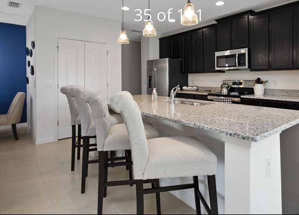 Beautiful home with 4 bed/2bath and very open plan with a nice granite kitchen and all stainless steel appliances with 3 car garage. One of the garage can be used for play room, gym room etc. This home is in a gated community and walking distance from Davenport School of the Arts. This community is zoned for short term rental as well, close to all theme parks, shopping, Restaurants and much more!