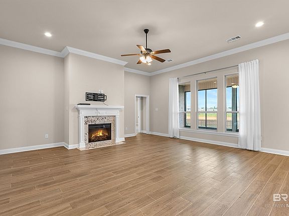 The Collinswood II floorplan is well designed with a spacious living area and open kitchen. Features granite countertops, upgraded tile floors in the common areas and carpet in the bedrooms, split floorplan, mud room with boot bench, double vanity in the primary and guest bathroom, separate shower, electric fireplace, crown molding, recessed lighting, walk-in pantry, stainless steel appliances, large island, added mood lighting in the kitchen and double car garage. Home is GOLD FORTIFIED! Relax on the screened patio and enjoy the view of the pond behind the fenced back yard! Buyer to verify all information during due diligence.