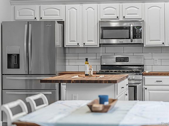 Step inside this bright, open-concept home with engineered hardwood floors throughout. The newly renovated kitchen features butcher block counters, stainless appliances, gas range, and four-door Whirlpool refrigerator. Flowing into the dining area and family room, a wood-burning stove complements the new 2023 high-efficiency furnace. Comfort is enhanced by central air and a Nest® smart thermostat that adapts to your habits.