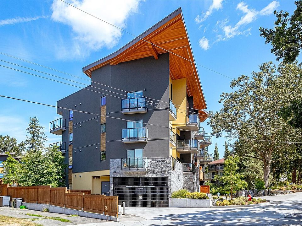Priced to move in Today! This modern 1 BED+DEN home at OTTO—a Built Green Canada development, has shown sustainability in building materials and energy efficiency. Positioned on the quiet side of the building with peaceful treed views, this south-facing suite features an open-concept layout with 9-ft ceilings, a contemporary kitchen with SS appliances and quartz countertops, in-suite laundry, a high-efficiency heat pump for heating and cooling, a Spacious primary bedroom and a versatile den ideal for an office or storage. A rare BONUS-this unit includes a LARGE UG parking stall that is located in the parkade with additional space for a motorbike or appropriate storage, as well as a storage locker on the same level of the suite. Building perks: EV charging, courtyard, community garden, and bike storage. Short distance to UVic, Camosun, Saanich Centre, Swan Lake and everyday conveniences. Own it, Live it, and Love it!