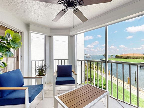 Discover an exceptional coastal retreat perfectly positioned on the Marco River. This impeccably maintained TURNKEY 2-bedroom + den, 2-bath corner residence captures sweeping water views from the moment you step inside. Sunlight fills every room, highlighting the home's stylish furnishings, freshly painted interiors, and breezy coastal design. Hurricane-impact windows with electric shutters provide both comfort and peace of mind, while the screened lanai offers a front-row seat to dolphins, passing boats, and the natural beauty of the river. Effortless living continues with covered parking steps from the elevator and beautifully furnished interiors that create an inviting, move-in-ready atmosphere. Grand Bay's resort amenities elevate the experience with a waterfront pool, spa, tennis, pickleball, and a floating dock ideal for kayaking through pristine waterways. Just a short stroll away, Olde Marco offers charming waterfront restaurants, boutique shopping, and convenient rental options for boating, biking, and island exploration. In addition, the condo includes secured 2026 seasonal rentals—providing income without sacrificing the serene coastal lifestyle this location offers.