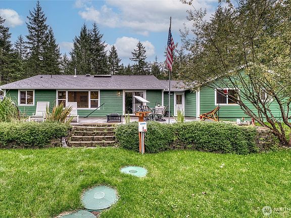 Enjoy Canal life with acreage!!! Enjoy the best of both worlds while driving home to your huge Rambler perched on top of a ridge with over 2 acres surrounding you. This beautiful spacious retreat has a mountain view commanding your attention with a huge patio to gather at. House lives as a 4 bedroom and large closed office/den, living room and dining room. With over 2300 sq ft of open floor plan to give all the space you need to enjoy your living space to it's fullest. Drop your anchor off the beach access you share or take your ATV or horses on miles of trails on DNR land behind you. Lots of mature fruit trees, trails, 5 outbuildings, wildlife and all the tranquility for you to enjoy. Lot was two lots prior, so very possible to revert.