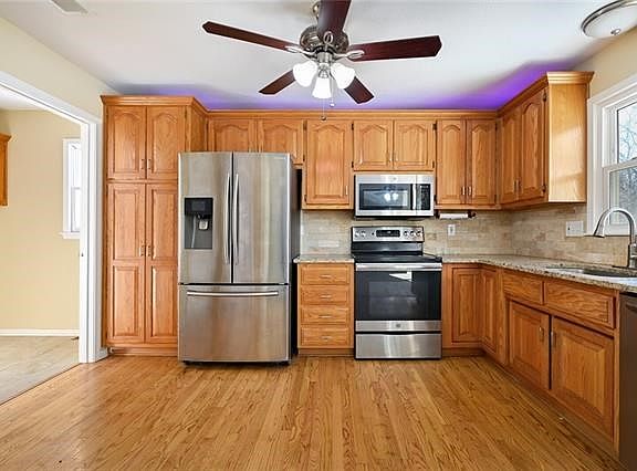 A perfect 10 on 2.14 acres! Nature lovers this is the property for you from a huge variety of perennials and trees to wildlife! Step inside this gorgeously updated home complete with main level master suite, soaring great room ceiling with wood burning stove, updated kitchen and modern finishes and colors throughout. Enjoy your favorite beverage out on the deck overlooking the woods and wild life galore. Partially finished basement with potential for more living and storage space with existing half bath. Detached 24 x 24 two car garage with ample room for a work bench and tools. Dog run in the backyard. Great location, the property is within minutes to 49/71 Hwy, schools, shopping and quick access to downtown KC. Buyers agent and Buyers responsibility to verify square footage, taxes and schools. Please remove shoes or wear booties in inclement weather, the carpet was recently cleaned. Seller is out of town, please allow 48 hours on expiration of contract. 2022-02-13