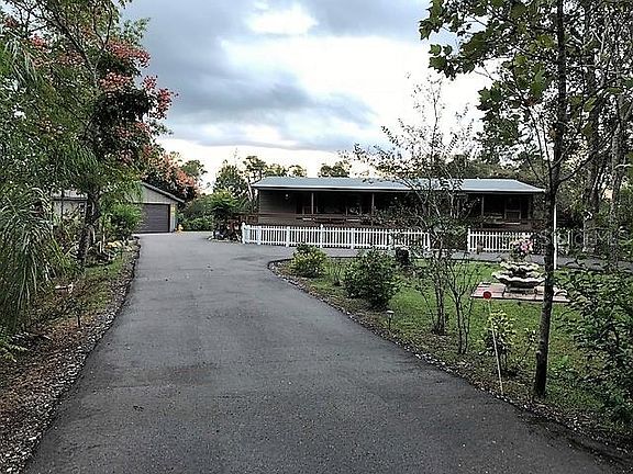 Looking for wooded acreage with home, "man" workshop, 2 car garage, plus RV carport partially fenced. 1.84 acre beautiful landscaping, well maintained property, just bring your furniture, toys and move into this spacious 4 bedroom Mobile. Ceramic tile throughout, easy to maintain. A beautiful covered front porch and covered back porch to enjoy the mornings and evenings plus total connected decking around whole unit. New asphalt circular driveway in 2016, New well pump 2015, New 4-ton A/C 1018, New Roof on home in 2915, New roof on garage 2019, Septic Tank cleaned out 1/2020. Home is in excellent condition with split bedroom plan. Everything you have been looking for in one place. Gated entrance secluded driveway off Walk In Water Road. Convenient to State Road 60 only few minutes to shopping and many local conveniences. Have your small "gentleman's farm" with animals of your choice or plenty of room for gardening. Several fruit trees with many other trees and plants.