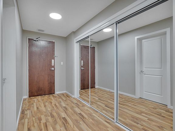 Gorgeous renovated 2-bedroom*, 2-bath condo with titled heated underground parking on a quiet, tree-lined street. Freshly painted with new LED lighting, custom mirrored closet doors, upgraded faucets, and modern hardware throughout. Over 1,000 sqft with 9-ft ceilings, this bright unit is filled with natural light from large windows. The kitchen features stainless steel appliances, slate tile, a walk-in pantry, and a raised eating bar. The living room is centrally located, with the primary suite and 4-pc ensuite on one side and a den with French doors (includes armoire, used as a bedroom) on the other for added privacy. Slate tile in kitchen, laundry, and baths; laminate in living, dining, and bedrooms; plus in-floor heating throughout. Enjoy elegant downtown living close to all amenities—just 230m to the LRT and minutes to the University.