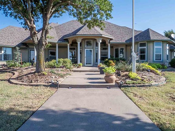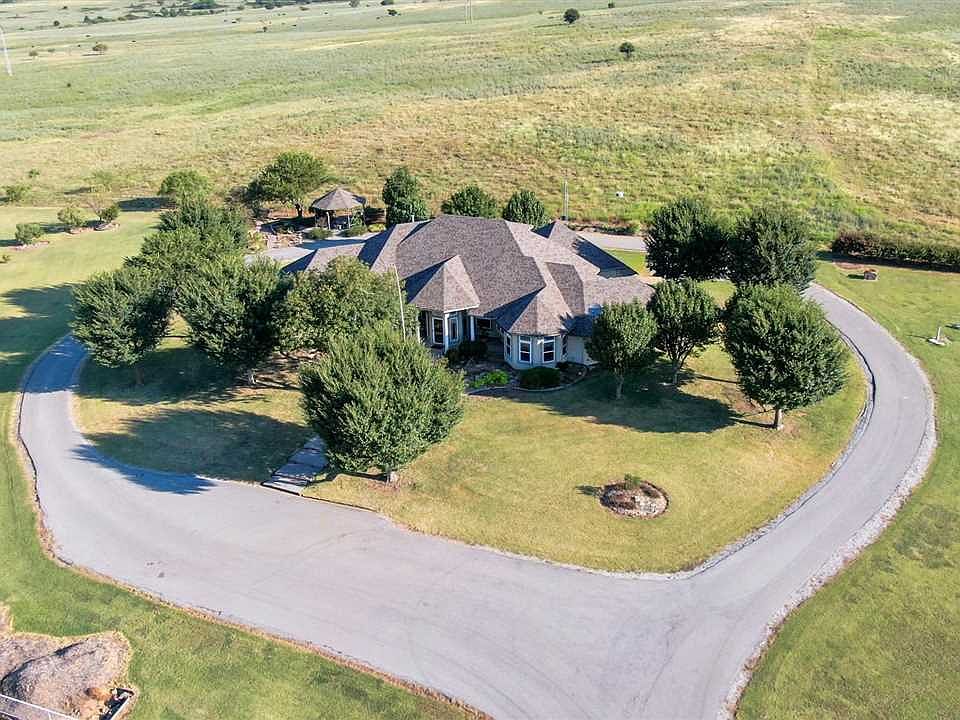 150 ACRES with luxury Farmhouse on acreage just outside Lawton. Escape the city without leaving convenience behind. Located just outside the Lawton city limits, this stunning 2,800 sq ft luxury farmhouse offers the perfect blend of comfort, functionality, and panoramic views. This 2 bedroom home contains a separate bathroom for each room as well as a half bathroom downstairs for guests. Walk in closets in both bedrooms as well as a storage closet at the top of the staircase. Step inside to a beautiful kitchen designed for both everyday living and entertaining. Kitchen is open to the living area as easily accessible to the breakfast nook and formal dining room. Located just off the kitchen is a large walk in pantry that is also an inside storm shelter. The fully functional office has built in storage for files as well as a patio out back to take a break from work. The breakfast nook could also be used as a sun room. Outside, enjoy multiple patios that showcase sweeping mountain and open country views, making every sunrise and sunset feel like a private retreat. The land is ideal for cattle or horse farming, with room to roam and the added benefit of annual hay production—a rare and valuable feature for agricultural buyers. Whether you're seeking a working homestead, a peaceful escape, or a blend of both, this property delivers. This property has Gore Blvd and Trail Rd frontage. Don't miss the opportunity to own a one of kind piece of real estate in Comanche County with productive acreage and endless potential. Surface rights only to be sold. Call Krystle Bishop at 580-583-8759 for more information or to schedule a private tour of this property.
