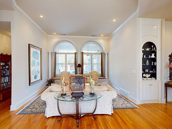 Step into elegant luxury in this gorgeous, expansive Mediterranean-style home that overlooks your inviting pool, adjacent wooded area, and covered veranda. Two story foyer entry welcomes you into a light, bright, open floor plan that doesn't compromise on privacy with its split bedroom plan! Primary bedroom includes enticing bay window sitting area with double-sided fireplace and coffee bar area, plus office. This is a lovingly and meticulously cared for breathtaking home that is move in ready