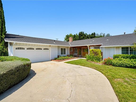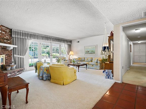 Situated on a quiet cul-de-sac street in a coveted Chatsworth neighborhood this charming ranch style pool home features four bedroom, a den/fifth bedroom, three bathrooms, 2,502 sq ft of living space, located on a 11,007 sq ft lot with a sparkling pool and spa, and a two car attached garage with direct home access. The inviting front porch with double door entry welcomes you into the spacious single level floor plan featuring a sunny Living room with a handsome fireplace, French doors overlooking the sparkling pool and backyard. The open Kitchen with dual dining areas (Large dining area or Family room), features hardwood floors and a lovely brick fireplace; the kitchen includes quartz countertops, nice cabinetry with ample storage, an electric oven and range, a dishwasher, a trash compactor, a skylight, and French doors that open to the backyard patio. Adjacent to the Kitchen, there is a laundry room with a pantry and storage, direct home access into the two car garage and a den or fifth bedroom with a 3/4 bathroom, perfect in-laws set up, guest room or home office. The Primary bedroom is generous in size with a walk-in closet, a secondary closet, en suite bathroom with a vanity and a tiled stall shower. The three additional family bedrooms are generous in size with ample closet space; they share the full hallway bathroom with a dual sink vanity and a shower over tub. You will enjoy the private backyard, it offers a sparkling pool and spa, secured with block walls, east facing the backyard gets morning sun and afternoon shade; excellent for outdoor dining and entertaining family and friends. Conveniently located nearby the transportation including the Metro link, Bus lines, 118 freeway, desirable schools, shopping and restaurants, Porto's Bakery and Café at the Northridge Mall, and Trader Joe's. First time on the market in over 50 years, this home is ready for you to make new memories with family and friends.