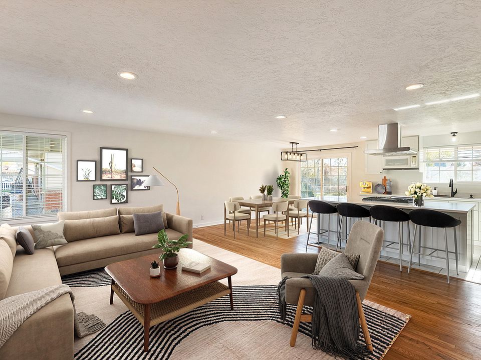 Step inside to find a bright, open-concept living area with a modern kitchen featuring brand-new appliances. The layout offers plenty of natural light and space to relax or entertain.