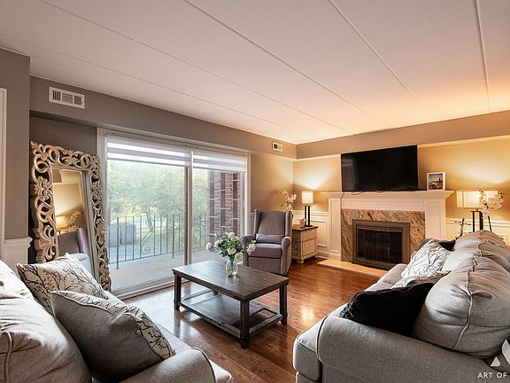 Modern and beautifully updated 2-bedroom, 2-bath condo with serene pond views! This stylish condo features the updated eat-in kitchen showcases sleek white cabinetry with a built-in wine rack, granite countertops, stainless steel appliances, and a beautiful water view to enjoy with your morning coffee. The spacious living room includes a cozy wood-burning fireplace and sliding doors leading to a front balcony with a custom oak plant stand-perfect for your favorite greenery. Both bathrooms have been tastefully remodeled, and newer flooring flows seamlessly throughout the home. You'll love the convenience of the in-unit stackable washer and dryer and the oversized back balcony -ideal for outdoor dining or simply relaxing while overlooking the peaceful pond and nearby playground. Fantastic location within walking distance to Centennial Park, Orland Park Health & Fitness Center, and so much more! A move-in ready home that combines comfort, style, and a prime setting.