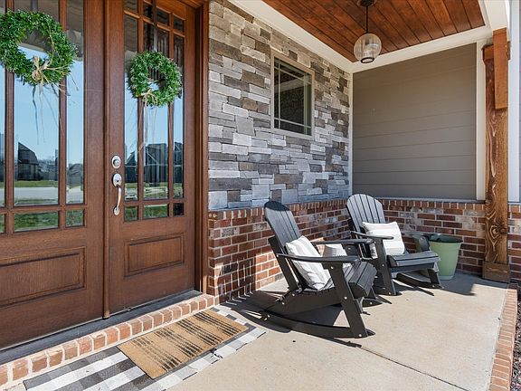 Stunning custom home situated on a cul-de-sac with a spacious oversized lot! This residence features a gourmet kitchen and showcases wood design trends throughout. It boasts two fireplaces, including an outdoor wood-burning fireplace with a gas starter in a screened-in back porch and a gorgeous brick gas fireplace in the living room. Ideal for both entertaining and everyday living, this home is filled with thoughtful design details. The main level includes two bedrooms; primary bedroom suite and a laundry room with cabinet and counter space. There's also a sizable drop zone just inside from the garage great for organization. 1% credit to be provided to go toward buyers closing costs, prepaids, title fees, or rate buydown if using preferred lender.