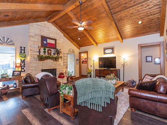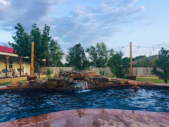 Beautiful Austin Stone home with 5 Bedrooms located on a quiet cul-de-sac in Grey Hawk. Custom built one owner home. Incredible wood work and built-ins throughout the home. 10' ceilings in the Living and open Kitchen area. Kitchen features walk-in Pantry with coffee bar/appliance area, island, gas cooktop, double oven and an abundance of cabinets The large living area has a wood burning fireplace and vaulted ceiling with wood inlay's. Isolated office. Oversized 3 car attached garage. Finished basement. The backyard is stunning with a large covered patio, in-ground pool with waterfall feature, fire-pit and beautiful landscaping Over 100 trees throughout this property per seller. A 50x30 shop with a half bath and Kitchen sink allow for easy access for the pool area Other home features: a Generac 22KW generator, Class IV roof installed in 2019 by Rhynehart Roofing, 2 Septic systems, Automatic sprinklers on part of the property, circle gravel and tar driveway, crushed asphalt drive to shop, LVP flooring installed in 2024 by Gowdy Floor