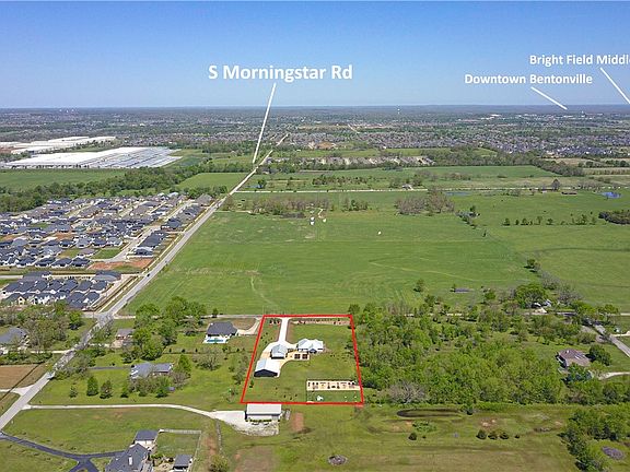 Nestled on +/-2.99 flat acres in heart of Bentonville, this exceptional estate offers the perfect balance of luxury, privacy, and versatility- minutes from Pinnacle Hills, Walmart Home Office, and Downtown Bentonville. Extensively remodeled property just outside city limits with privacy. The meticulously designed primary residence features custom craftsmanship, professional gas range, premium appliances, and seamless indoor-outdoor living. James Hardie siding, designer closets, and extensive built-ins add style and function. A fully equipped guest house provides space for guests, or income-bearing opportunities. Black metal building could serve as an event venue, showroom, or workshop, with a ½ bath and durable metal roof. A 26kW Generac generator & built-in storm shelter offers peace of mind. Professionally landscaped grounds enhance the natural beauty. A rare opportunity for estate-style living with urban convenience in one of Bentonville’s most sought-after locations. 797 SF guest house incld in total heated SF